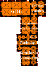 | Hier im Palazzo della Gonfaloniere residiert der mächtige Bannerherr der freiherrschaftlichen Soldaten. Neben den Gemächern des Gonfaloniere befinden sich aber auch die Kasematten der Soldaten, in denen man Gemälde der Festungen und Burgen der Baronie finden kann, die Offiziersquartiere und die Ställe der edelsten Streitrösser in diesem Gebäude. Die Offiziere der Baronie stammen allesamt aus den edlen und angesehenen Häusern der Region. Der Pferdestieg verdankt seinen Namen der Tatsache, daß dieser offene Hausflur eben auch mit Pferden betreten werden kann. |