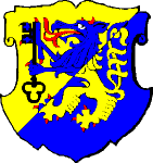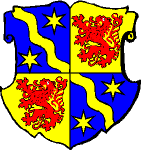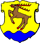 die Umgebung auf Silber, über einem blauen gewellten Schildfuß,