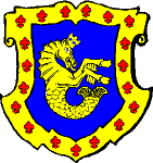 Pferd der Stadt Belhanka, wiedergeviert zur roten Rose auf Gold für