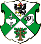 silbernen Herz der Marvinko und dem silbernen Helm Urbets auf Grün.