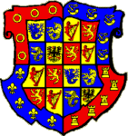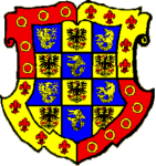 auf Blau, umgeben von einem gevierten Schildrand; neun goldene Kronen auf