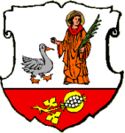 über drei ebenfalls roten Schilden auf Silber, mit einem überbreiten