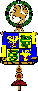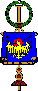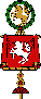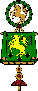 blauem Tuch; (II) Goldener Adler vor drei gekreuzten roten Schwertern