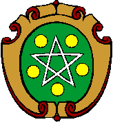 Pentagramm mit zwei goldenen Lilien auf blauem Grund, auf gespaltenem